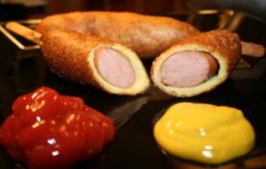 Preheat oil to 375°F. Insert Popsicle sticks in hot dogs. In a bowl, combine all dry ingredients, and then add in all wet ingredients. Stir lightly until just combined. Dip hotdogs into the batter and place in the heated oil, being careful not to overcrowd. Drain on paper towels when finished. Corndogs are done when they are a medium golden brown color and should be floating at the top.